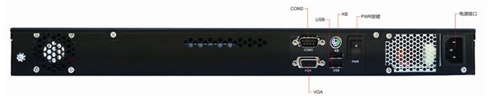 設(shè)備背面:接口:VGA*1,USB*2,COM2*1,KB*1,電源接口*1